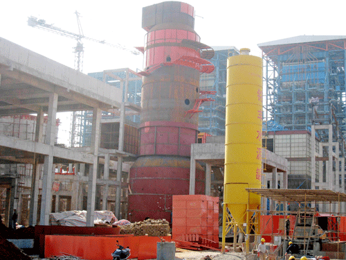 由我公司负责设计、承建的湛江晨鸣浆纸有限公司自备热电厂3×280t/h次高温次高压循环流化床锅炉烟气脱硫工程,为炉外湿式(造纸白泥-石膏法)脱硫,自2010年11月15日开工以来,经过40天的努力奋战,1#锅炉配套的脱硫塔于12月25日顺利封顶。